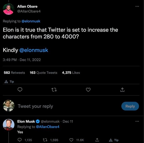 Elon Musk Konfirmasi Akan Tingkatkan Batas Karakter Tweet di Twitter Jadi 4.000 Karakter