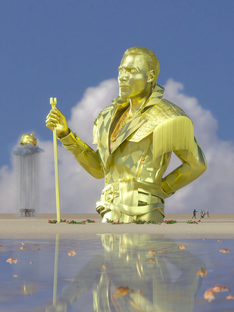 Tiga karya tersebut menunjukkan sang vokalis, sementara yang keempat adalah penggambaran sebuah grand piano putih dengan sebuah mahkota di dudukannya, dikelilingi oleh kolam yang berisi ikan mas.