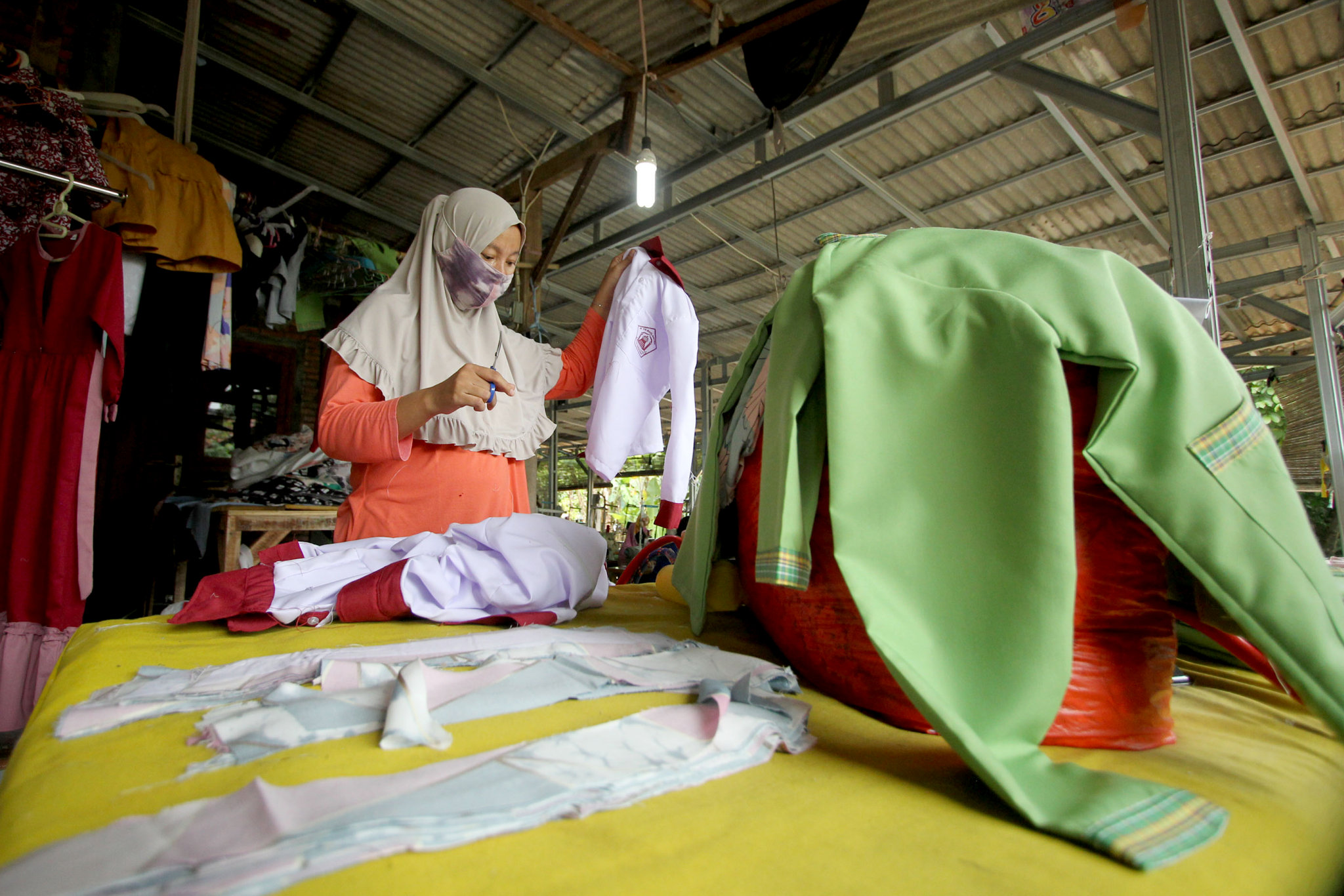 Aktivitas pekerja di industri konveksi milik Enca di kawasan Curug, Bogor, Jawa Barat, Jum’at, 12 Maret 2021. Foto: Ismail Pohan/TrenAsia