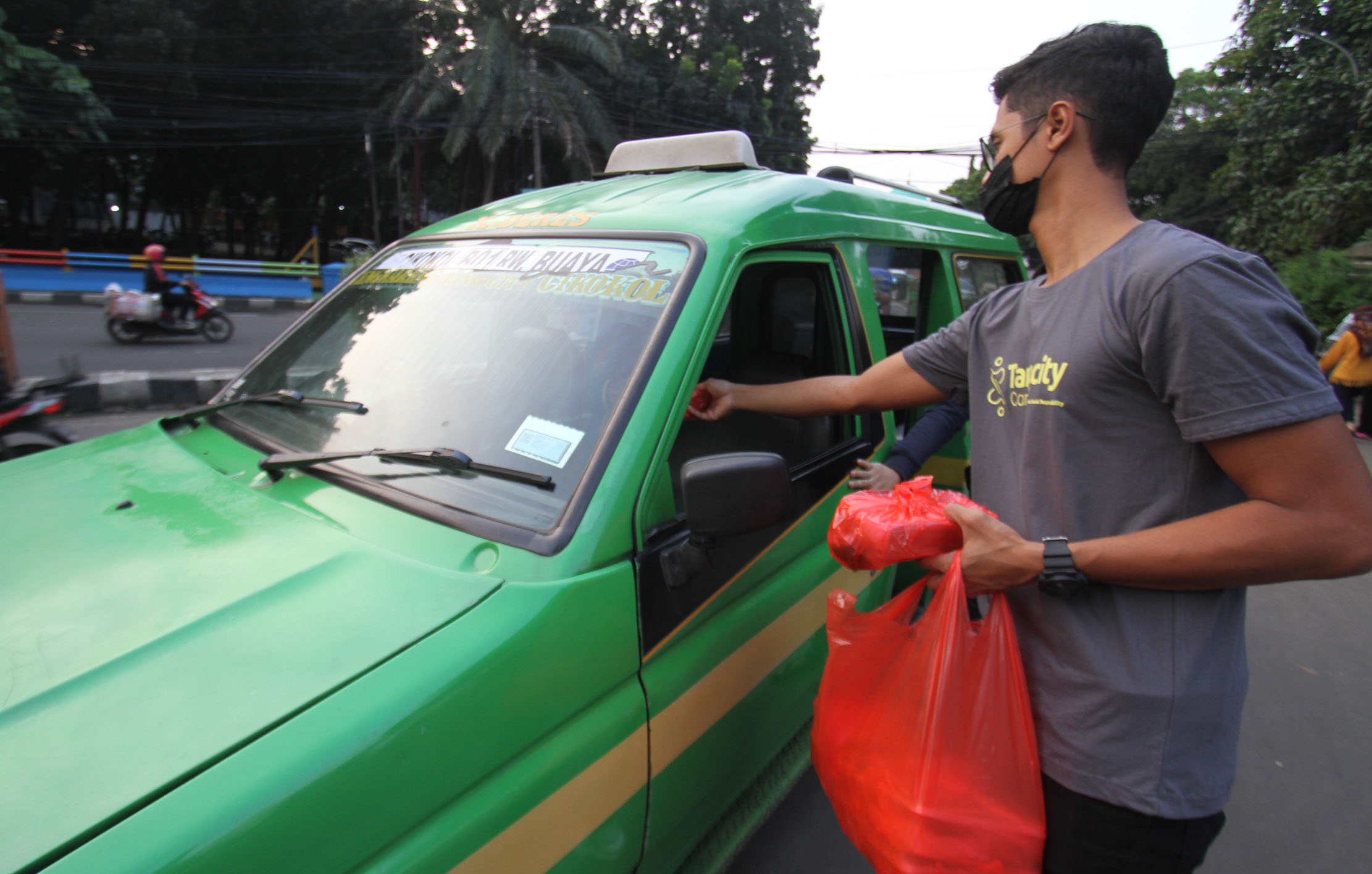 Rame Rame Sedekah merupakan program CSR khusus Ramadan yang perdana digelar sejak pandemi Covid-19 serta melibatkan karyawan manajemen Tangcity Superblock untuk pendistribusiannya. Sebelum pandemi, manajemen Tangcity Mall secara rutin menjalankan kegiatan bagi-bagi takjil di sejumlah mushola yang tersebar di area mall. Foto : Panji Asmoro/TrenAsia