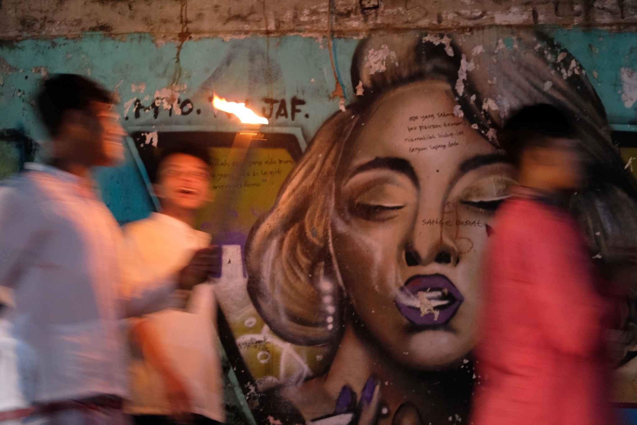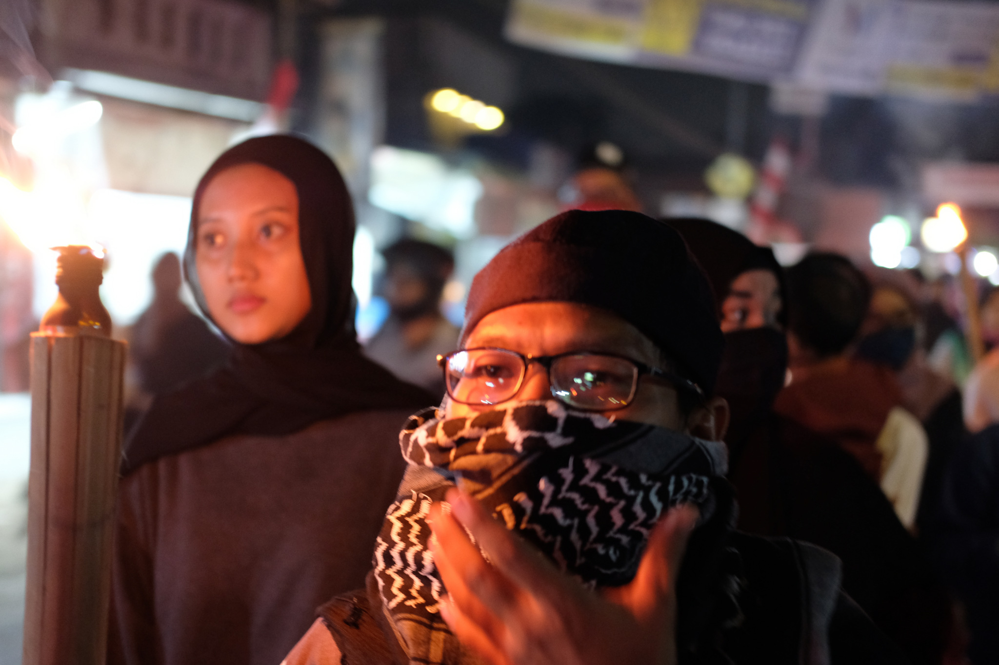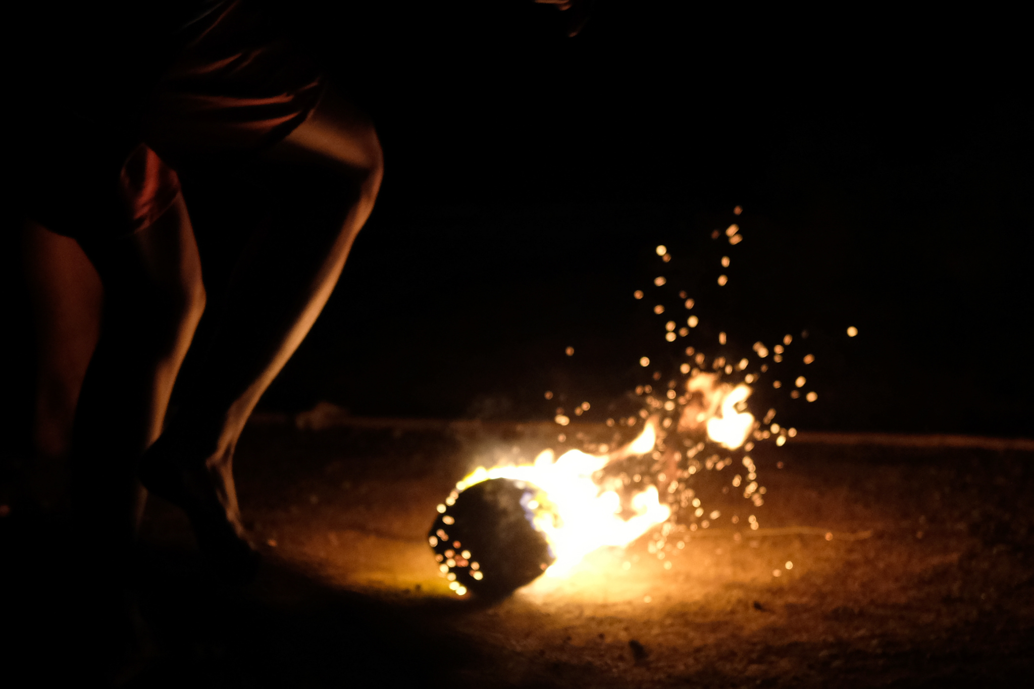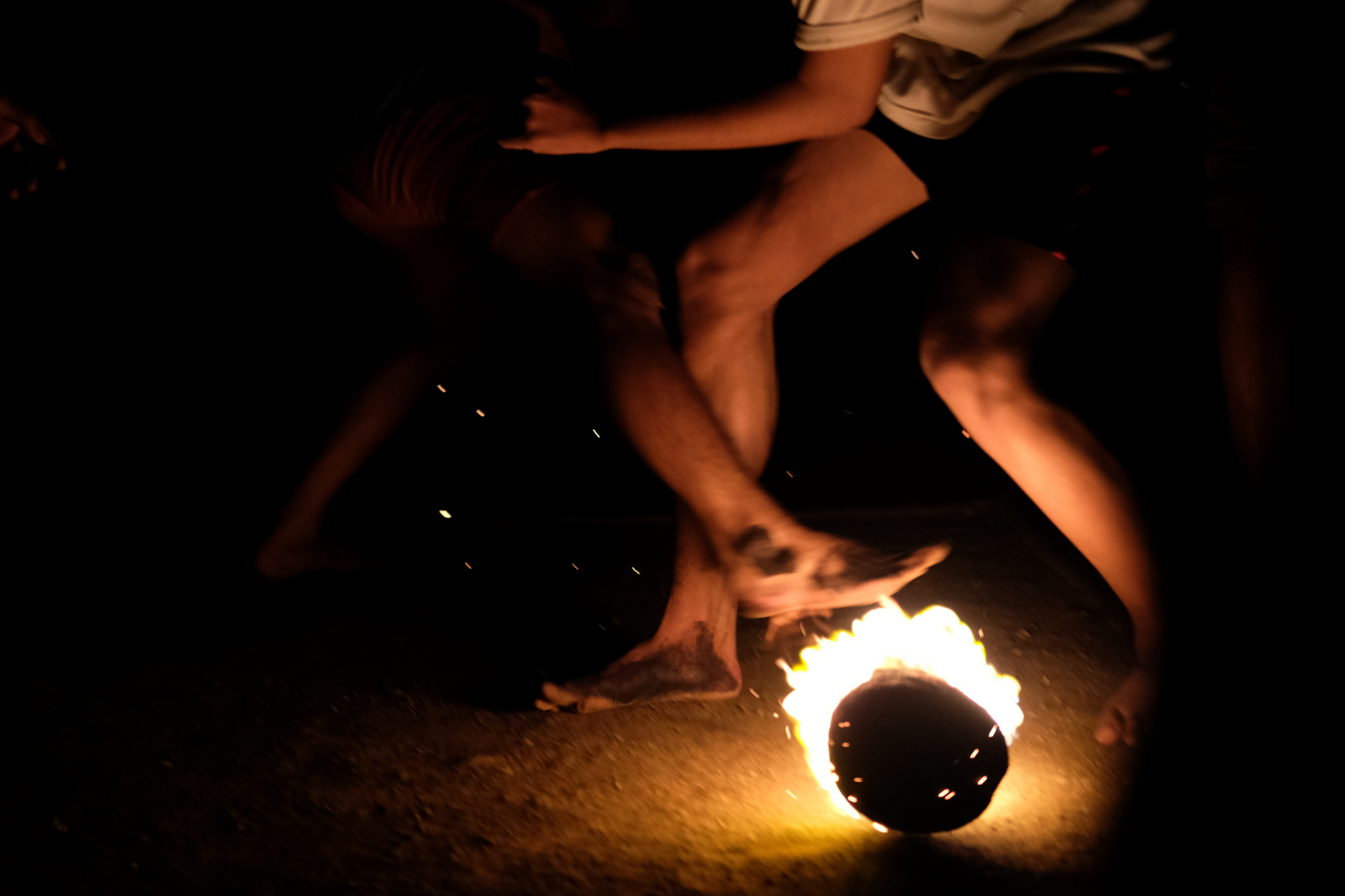 Warga menunjukkan atraksi sembur api saat peringatan malam 1 Muharram 1442 H di kawasan Rempoa, Ciputat, Tangerang Selatan, Banten, Rabu, 19 Agustus 2020 malam. Kegiatan Gema Muharram tersebut diisi dengan berbagai kegiatan lomba, pawai obor dan permainan tradisional sepakbola api yang rutin diadakan warga untuk menjaga kerukunan dan menyambut pergantian Tahun Baru Islam. Foto: Ismail Pohan/TrenAsia