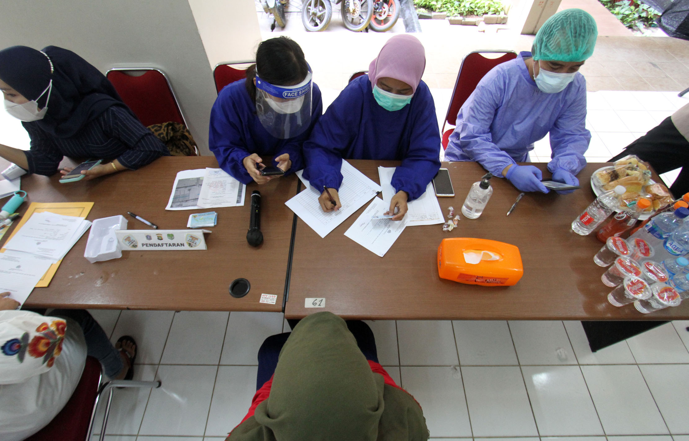 Suasana pelaksanaan swab gratis yang digelar pengelola Apartemen Gading Nias Residence (GNR) bersama Polres Jakarta Utara, Polsek Kelapa Gading dan Puskesmas Kecamatan Kelapa Gading di Tower Alamanda GNR, Jakarta, Kamis 20 Mei 2021. Foto : Panji Asmoro/TrenAsia
