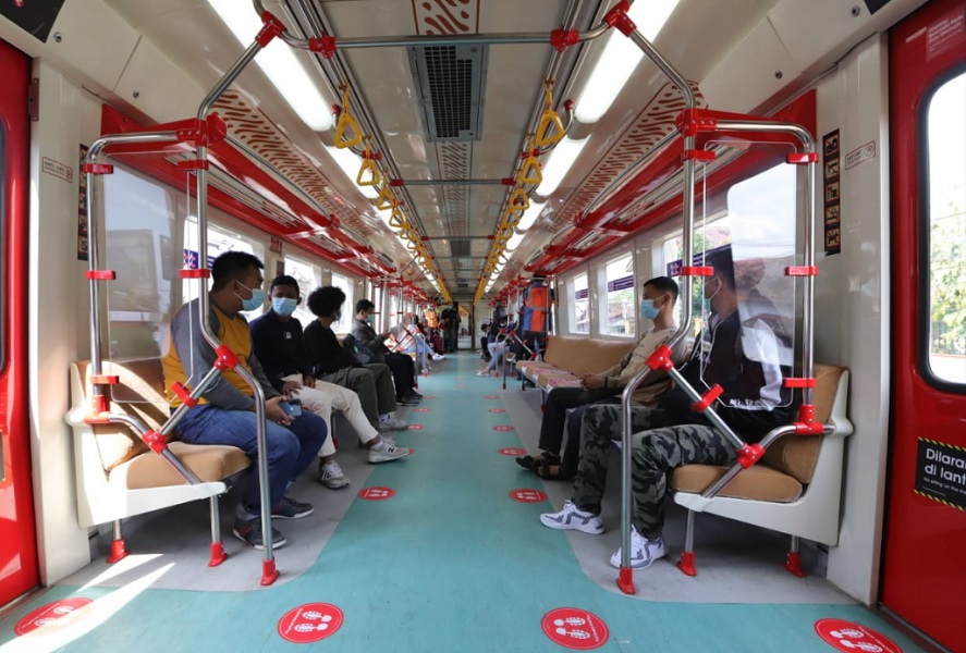 Penumpang diwajibkan duduk atau berdiri di tempat yang tidak diberi tanda larangan dan aturan tersebut harus dipatuhi supaya mencegah potensi penularan COVID-19.