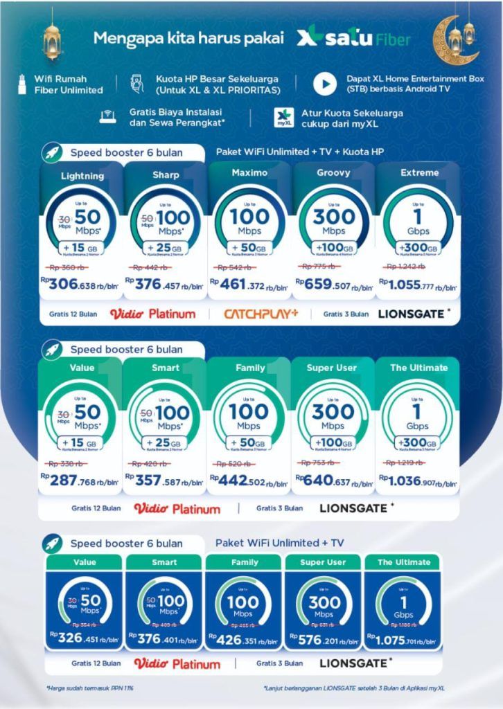 First Media menyediakan layanan internet berbasis kabel dan fiber yang terintegrasi dengan TV berlangganan. Provider ini cocok untuk pengguna rumahan yang menginginkan paket lengkap internet dan hiburan. Kecepatannya cukup kompetitif untuk kebutuhan streaming, browsing, dan aktivitas keluarga, meski ketersediaannya masih terbatas di wilayah perkotaan tertentu.