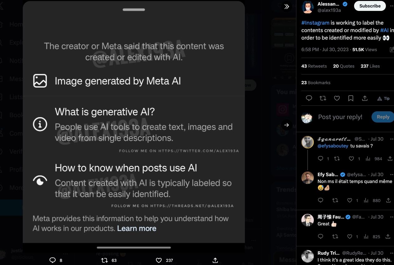 Keputusan yang dilakukan oleh Meta untuk menandai konten buatan AI di Instagram dimaksudkan untuk mengatasi di atas. Hal ini akan memungkinkan pengguna untuk mengidentifikasi gambar atau foto mana yang dihasilkan oleh AI dan foto mana yang dibuat oleh manusia. Fitur ini akan memberikan lapisan perlindungan tambahan bagi pengguna serta mencegah penyebaran konten penipuan di media sosial.
