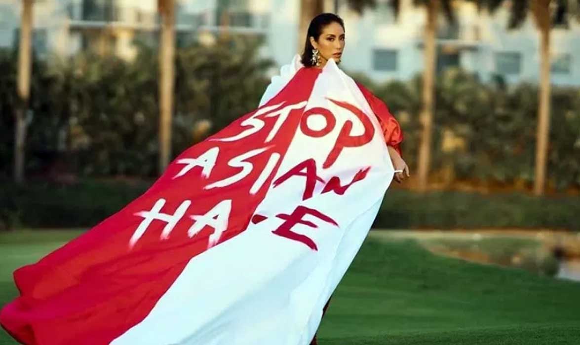Pesan berbeda disampaikan kontestan Singapura Bernadette Belle Wu Ong. Dalam babak National Costume, Bernadette mengenakan jubah merah dan putih dengan tulisan, “Stop Asian Hate”